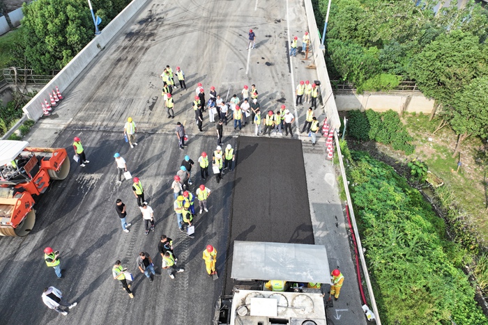作为本次活动的核心环节,全体人员实地观摩了由买球进行施工的预防性养护技术现场,直观了解实际应用效果。在长纤维功能化复合封层技术区域,技术人员讲解了该技术如何通过一层找平,两层抗裂,三层防水为道路建立完善的表面功能。在MOH抗滑超薄磨耗层技术现场,参观人员对其抗水损、耐磨耗和抗滑性能进行详细了解。针对车辙、沉陷、龟裂等病害,改性铺装技术展示了如何将沥青混凝土旧路面在常温条件下改性成复合有机水硬性材料路面。以材料关键技术为根本,以成套专用装备为依托,以当代工程技术为手段,该工艺具有抗变形、防水损、耐老化、长寿命等多重技术优势。